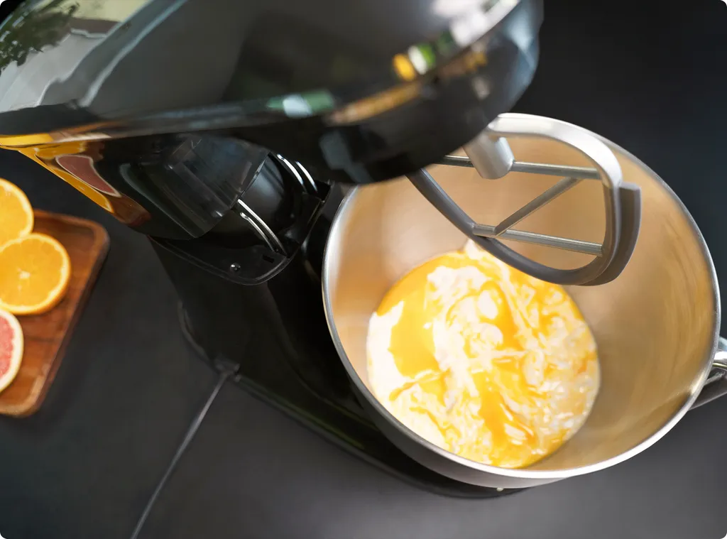 Planeet Chef wurde mit einer großen Schüssel mit einem Fassungsvermögen von 6,5 Litern ausgestattet, mit der Sie jede Menge Kuchenteig zubereiten können – sowohl für eine üppige Party als auch für den täglichen Bedarf. Die spritzwassergeschützte Abdeckung macht es einfach, die Küche sauber zu halten, und eine spezielle Öffnung ermöglicht das Hinzufügen von Zutaten. Mit einem praktischen Griff können Sie die Schüssel leicht tragen und den Teig verteilen. Die Schüssel ist ideal angepasst, so dass die Rühraufsätze perfekt, den Boden der Schüssel erreichen und die Zutaten gründlich verrühren.