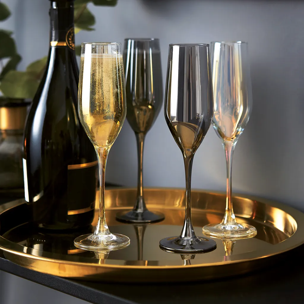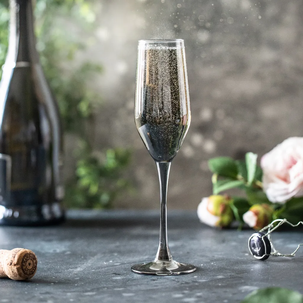 * 6 elegante, transparente Champagnergläser aus Glas 160 ml mit einem schillernden, grafiten Farbton bedeckt