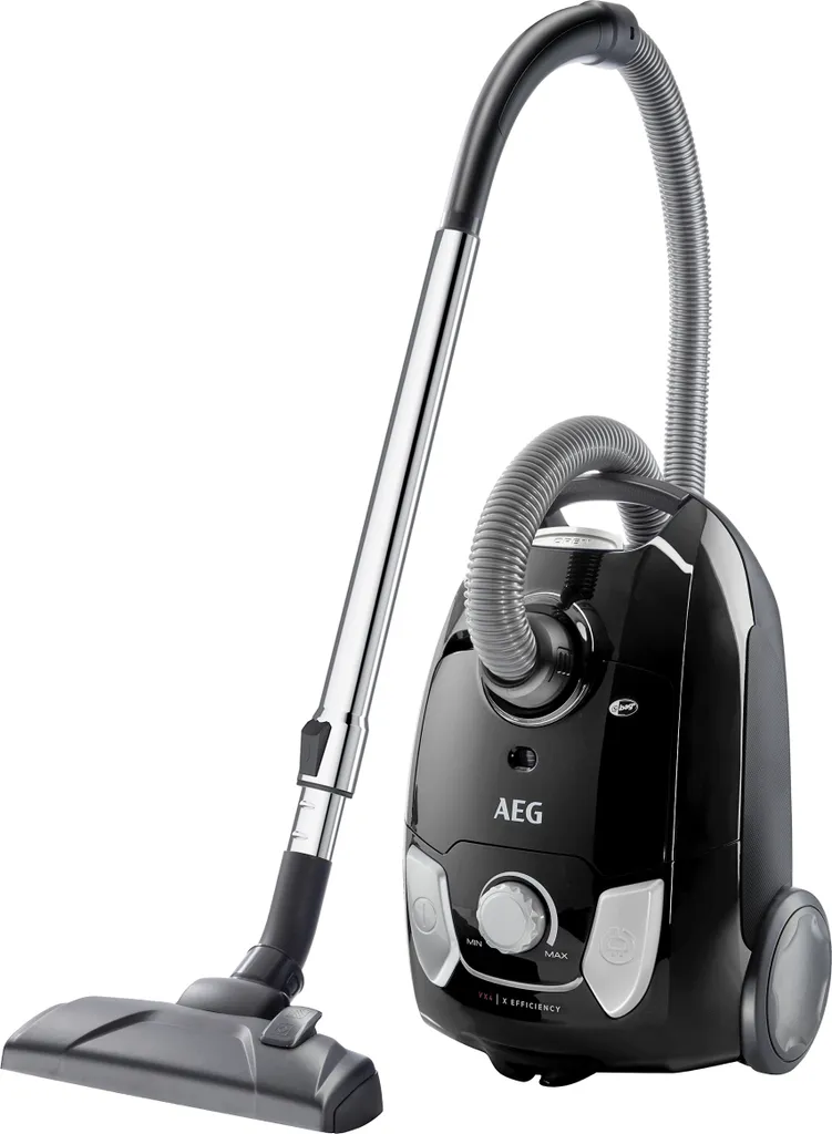 AEG Beutel-Staubsauger VX4 / X Efficiency VX4-1-EB Mit Hygiene Flter E12, waschbar. Metallteleskoprohr. DustPro-Kombidüse, für optimale Staubaufnahme, 2in1 Fugen- und Polsterdüse, Möbelpinsel integriert. Horizontale und vertikale Parkfunktion. Aktionsradius 7,5 m. Hygienefilter waschbar. Ergonomischer Handgriff. Stossleiste Kantenschutz. Teleskoprohr aus Edelstahl. Stufenloser Drehregler. , Durchschnittlicher Jahresverbrauch 28 kWh, Hartbodenreinigungsklasse A, Teppichreinigungsklasse C, Staubemmissions- klasse A, Geräuschpegel 80 dB. Leistung: 650 W nominal, 750 W maximal.