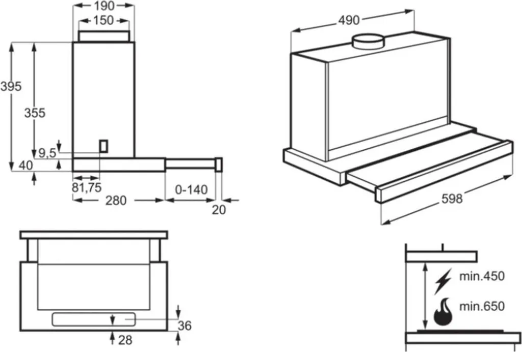 AEG DPS5650AM – Motorhaube – ausziehbar – Breite: 59.8 cm – Tiefe: 30 cm – Absaugung und Rückführung (mit zusätzlichem Rückführungsset) – Grau