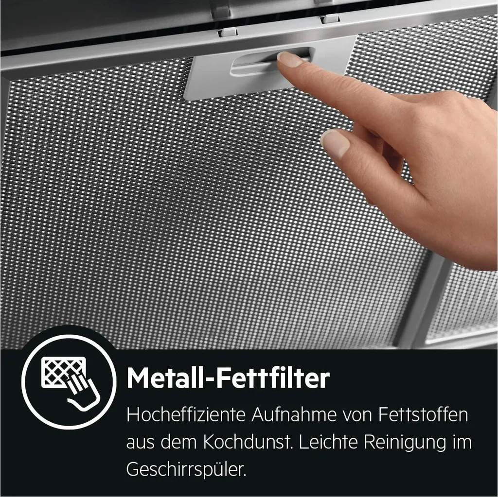 AEG DUB1611M – Motorhaube – Standard – Breite: 59.9 cm – Tiefe: 51.3 cm – Absaugung und Rückführung (mit zusätzlichem Rückführungsset) – rostfreier Edelstahl