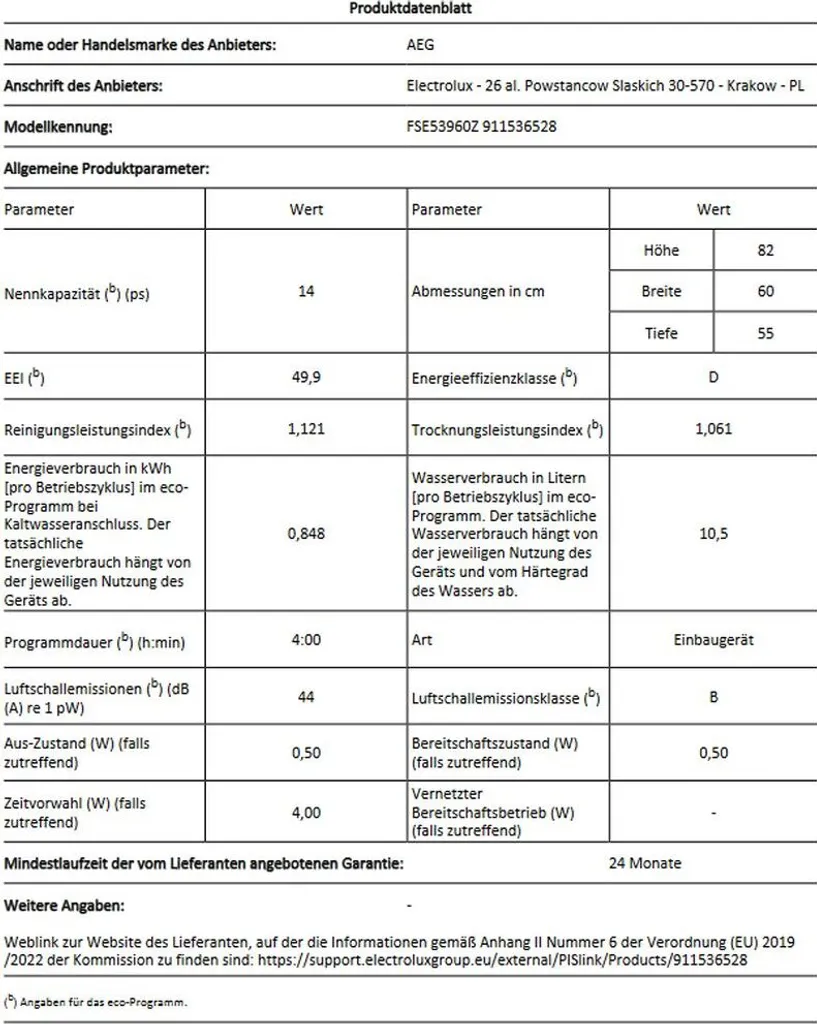 - Programme: 160 Minuten, 60 Minuten, 90 Minuten, AutoSense 45°-70°, Eco 50°C, Maschinenpflege, Quick 30 Minuten