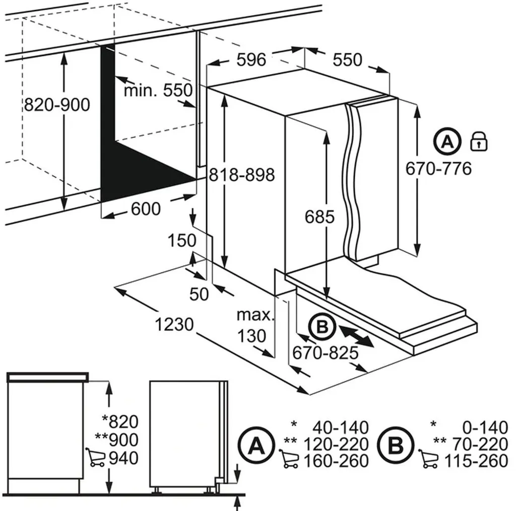 - Einbaumaße H(min-max)xBxT (mm): 820-900x600x570