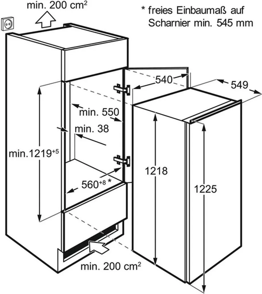 - Einbaumaße HxBxT (mm): 1225x560x550