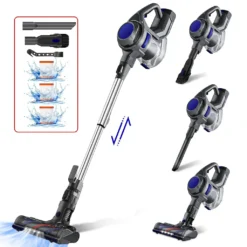 Der 5-in-1 kabellose Staubsauger wird mit einer Vielzahl von Zubehörteilen geliefert, darunter eine Turbo-Bodenbürste, ein vergrößerter 2-in-1 Saugdüse, eine Reinigungsbürste und ein Teleskoprohrwerkzeug. Sie können zu einem Handstaubsauger wechseln, um Schmutz auf Schreibtischen oder in den Ritzen von Autositzen aufzusaugen. Mit der elektrischen LED-Seitenbürste mit flexiblen Gelenken können Sie Staub von Möbeln und unter Betten entfernen und tote Winkel beseitigen.