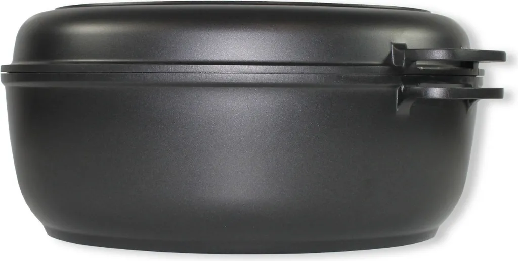 Robuster Gänse Bräter nicht nur für Ihren Weihnachtsbraten. Praktisch hierbei ist der Deckel. Dieser ist auf der Innenseite geriffelt und kann somit als Grillpfanne verwendet werden. Der Bräter ist mit einer antihaftbeschichtung versehen.