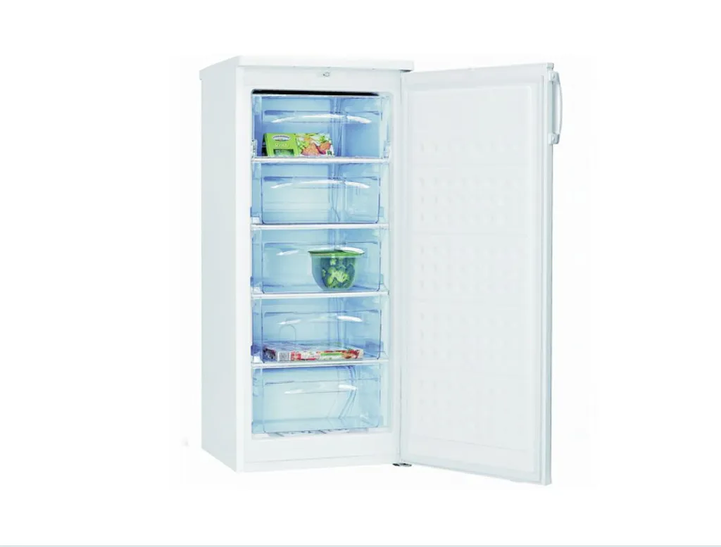 Formschönes, modernes Design in gesofteter Form, Transparenzdesign „Blue-Line“, Kühlmittel: R600a, Energieverbrauch 0,43 kWh/24 Std., Gefriervermögen: 10 kg/24 Std., manuelles Abtauverfahren, Temperaturbereich: -18 °C oder tiefer (einstellbares Thermostat), ergonomischer Türgriff, 2 höhenverstellbare Füße, 1 Gefrierfach mit Klappe, 4 stabile Schubladen, 1 Eiswürfelbehälter, Gerätegewicht: 51 kg