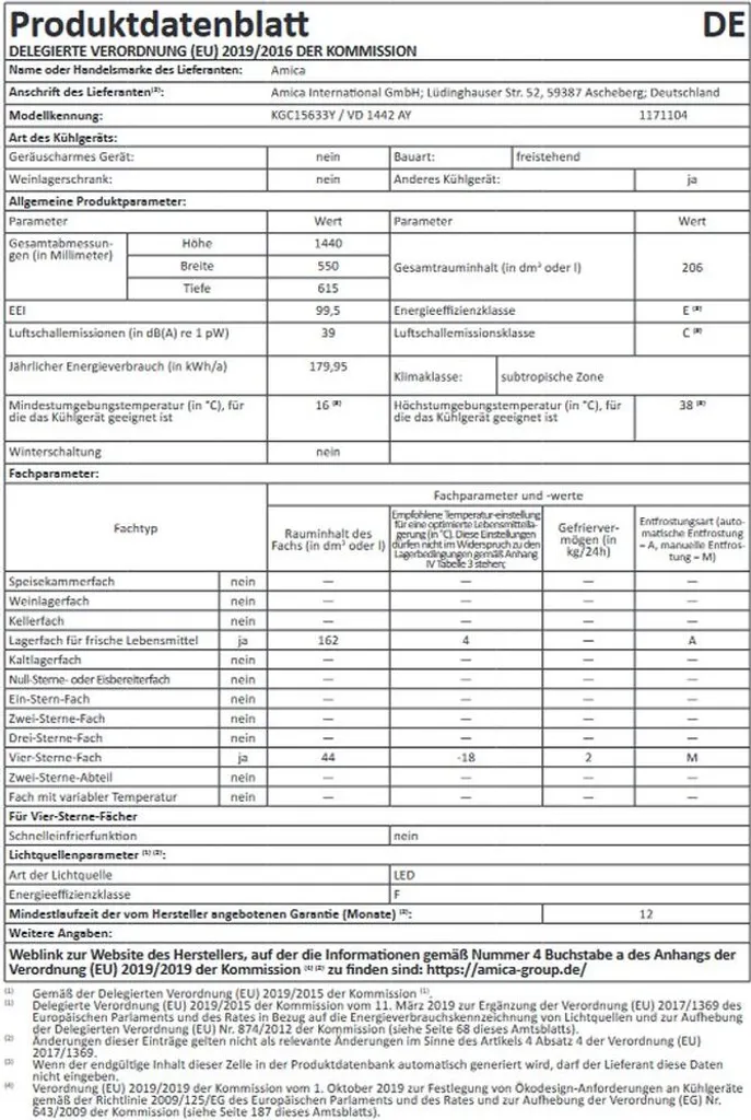 - Jahresenergieverbrauch in kWh: 180 kWh