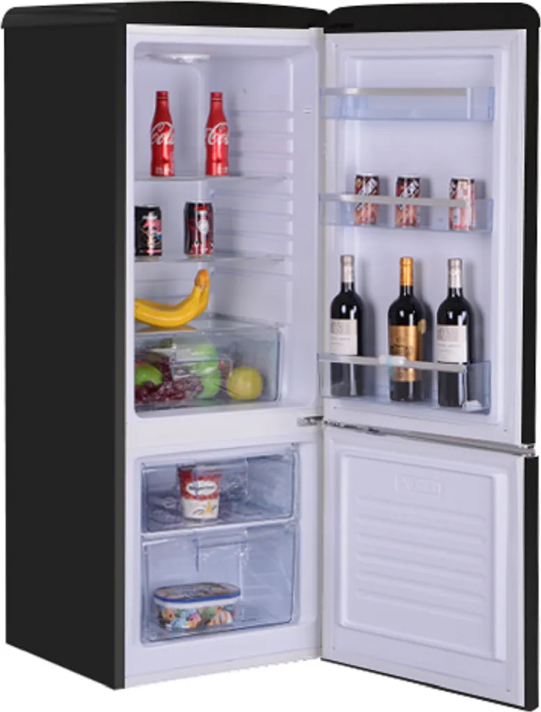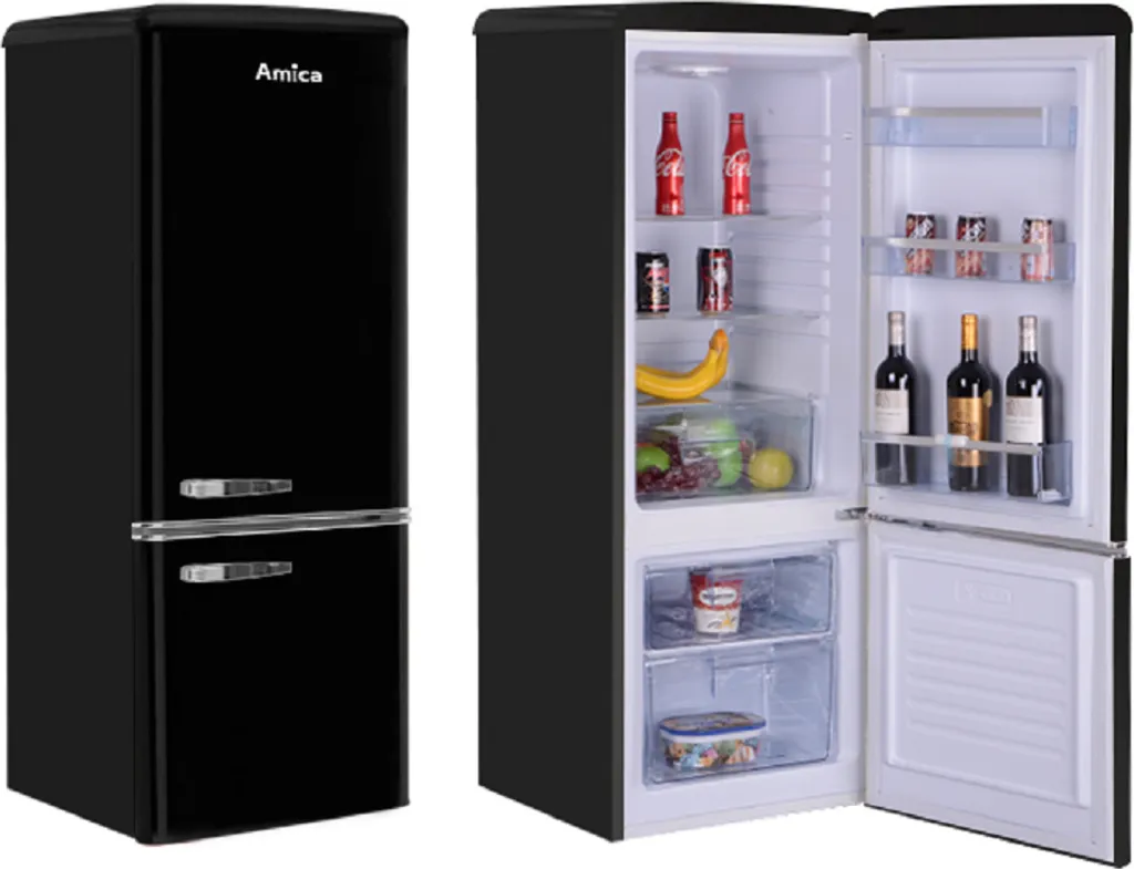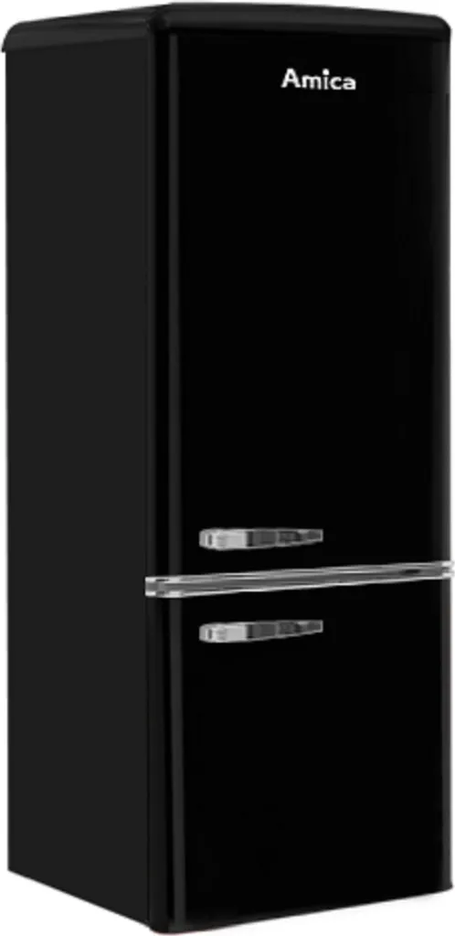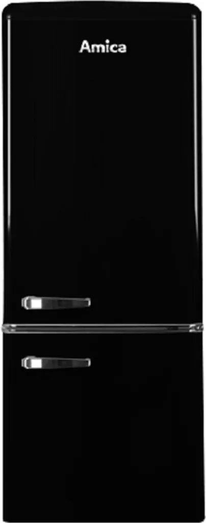 Amica Kühl Gefrierkombination Retro Design im edlen Schwarz und verchromten Metall Griffen.