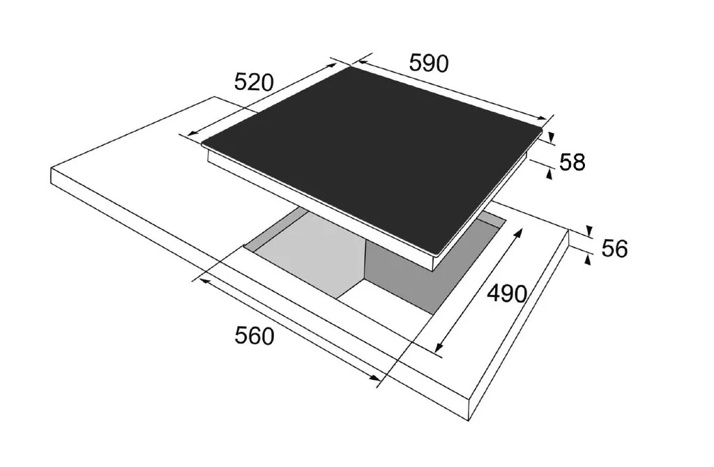 - Ausschnittmaß (BxT): 560,0 x 490,0 mm