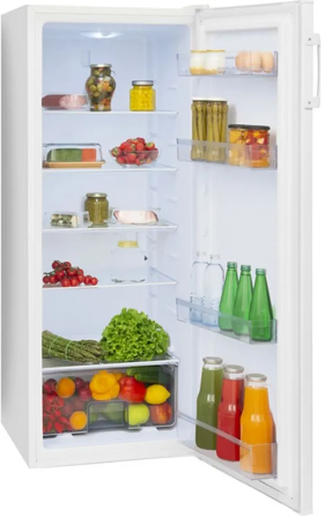 Der Vollraumkühlschrank VKS 354 100 W von Amica überzeugt dank mit einem geringen Energieverbrauch. Der Kühlschrank besitzt einen umfangreichen Nutzinhalt von 229 l und wird über ein stufenlos regelbares Thermostat eingestellt. Außerdem sind eine Abtauautomatik und eine Innenraumbeleuchtung vorhanden. Vier höhenverstellbare Glasablagen und vier Türablagen bietet viel Raum zum Kühlen für Lebensmittel. Darüber hinaus können die vorderen Füße können in der Höhe verstellt werden.