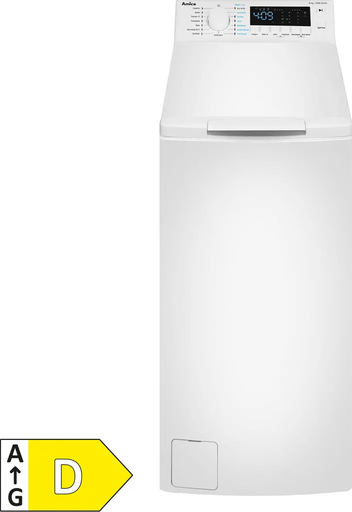 Amica WT 461 700 Waschmaschine 6 kg Toplader 16 Programme LED Display (Skala A bis G)