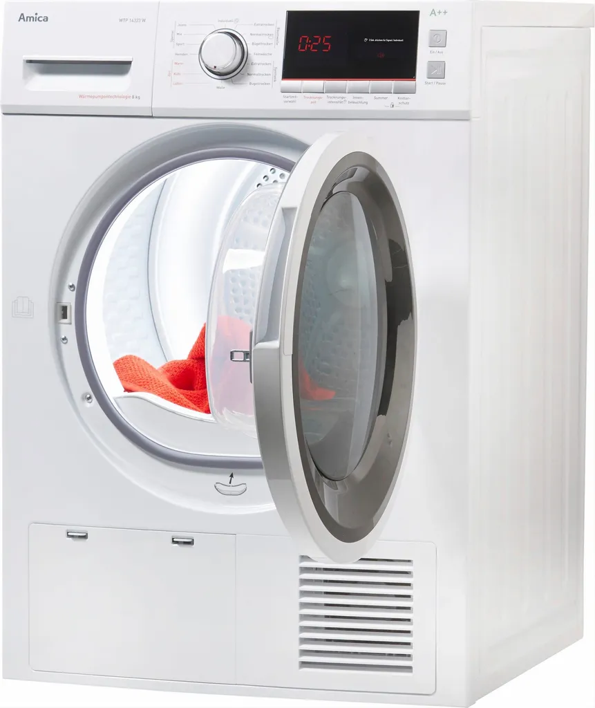 Im Vergleich zu Kondensationstrocknern oder Ablufttrocknern benötigen ein moderner Wärmepumpentrockner deutlich weniger Energie. Der Amica WTP 14323 W punktet in . Der Wärmepumpentrockner hat keinen Heizstab und verbraucht daher erheblich weniger Energie.