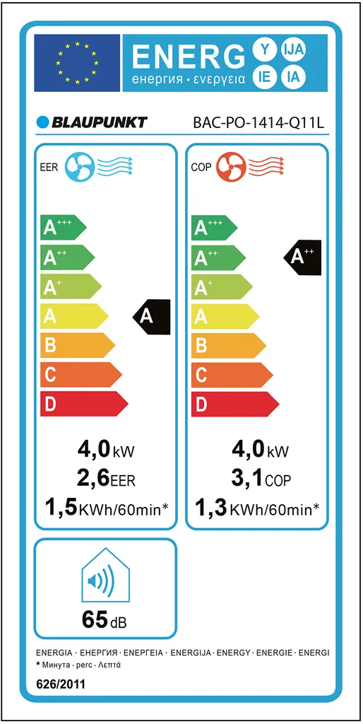 -Energieeffizienzklasse: UE EER/COP A/A++