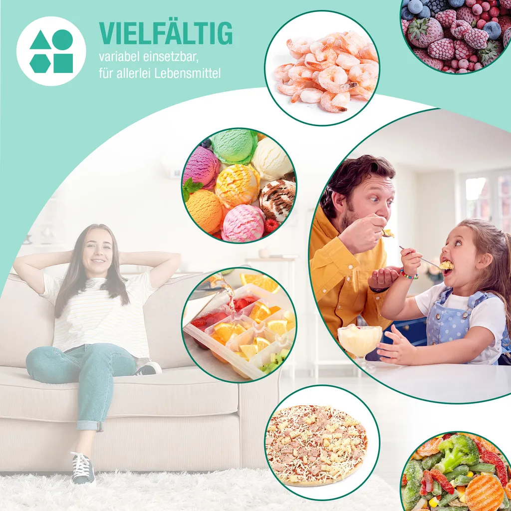 - Vielseitigkeit: Der wechselbare Türanschlag und die justierbaren Standfüße machen die Gefrierbox anpassungsfähig an Ihre individuellen Bedürfnisse und sie passt perfekt in jeden Raum