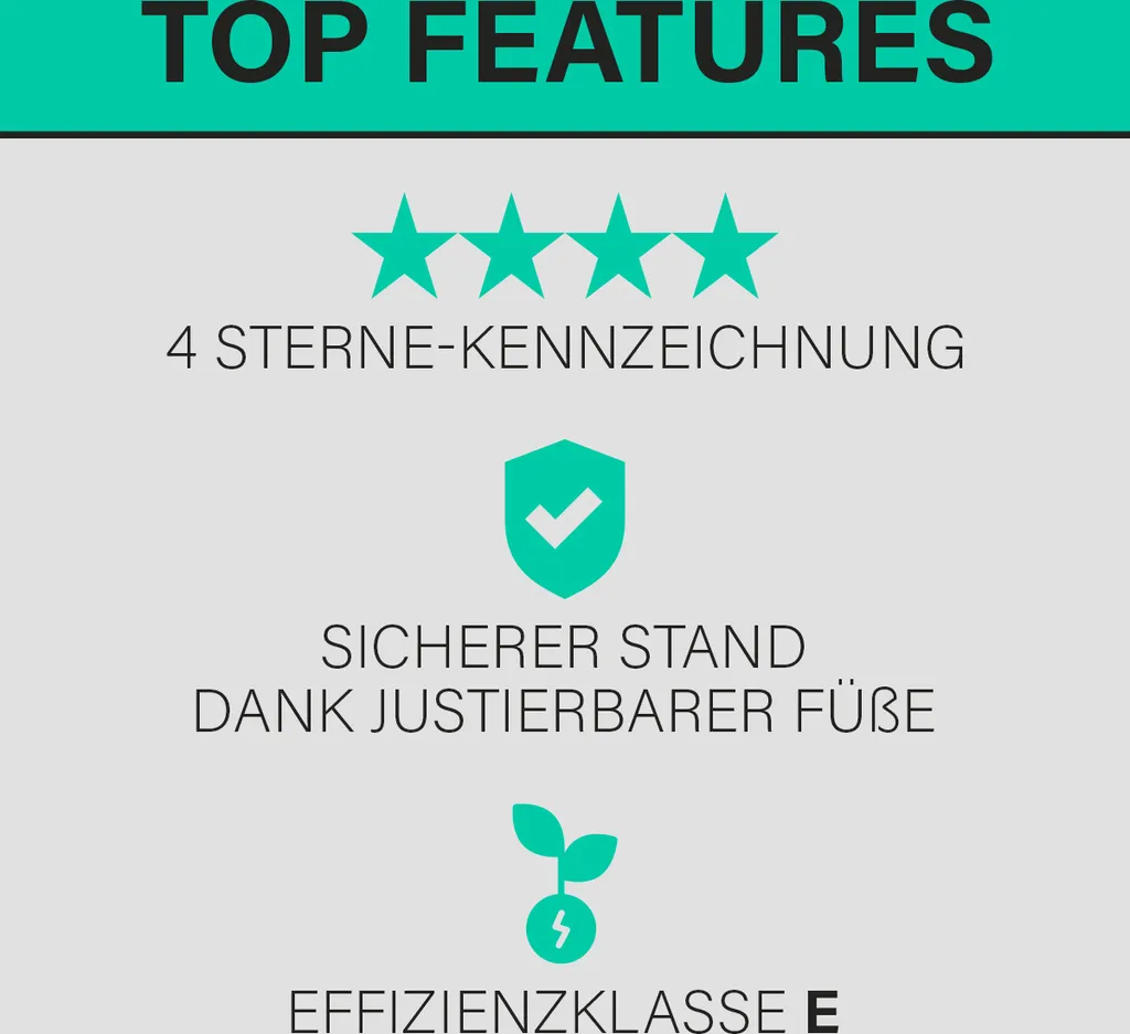 Du wirst begeistert sein von der 4-Sterne-Kühlung und der stufenlosen Temperaturregelung, die jederzeit für die optimale Kühlung deiner Lebensmittel sorgt. Mit seinem 70-Liter-Nutzinhalt hast du genug Platz, um all deine Lebensmittel aufzubewahren. Die drei Fächer, aufgeteilt in zwei Gefrierschubladen und eine Gefrierfachklappe, sorgen dafür, dass du alles immer griffbereit hast.