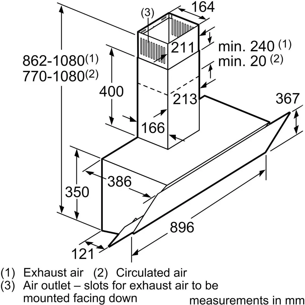 - Gerätemaße Abluft (HxBxT): 750 – 1080 x 896 x 386 mm