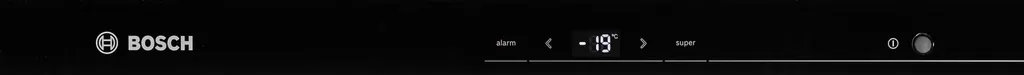 – Bedienelemente: Superschalter Gefrieren, Temperaturanzeige für Gefrieren, Warnfunktionen Gefrierteil, Warnsignal Störung Gefrieren, Warnsignal Tür offen