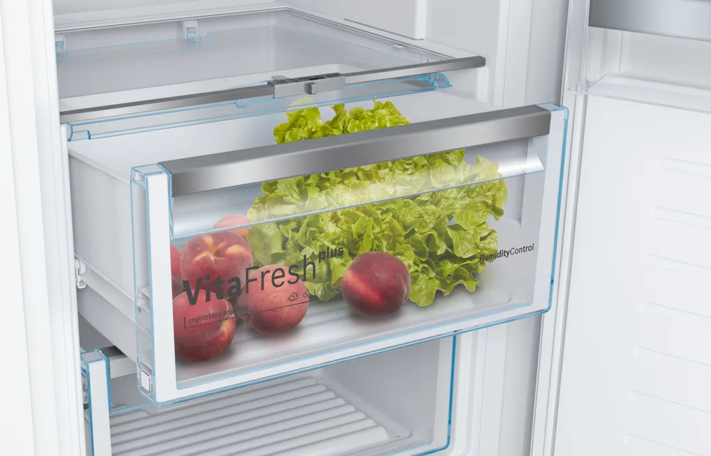 1 VitaFresh plus Schublade auf Teleskopschienen mit Feuchtigkeitsregulierung – hält Obst und Gemüse vitaminreich und bis zu 2x länger frisch
