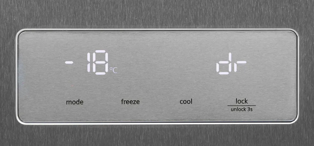 | Bedienelemente | Superschalter Gefrieren Superschalter Kühlen Temperaturanzeige für Gefrieren Temperaturanzeige für Kühlen Warnsignal Tür offen | |
