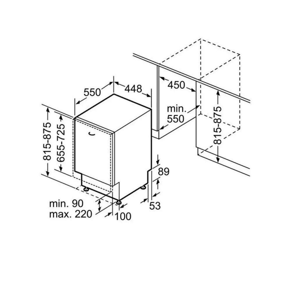 Nischenbreite minimal: 450 mm