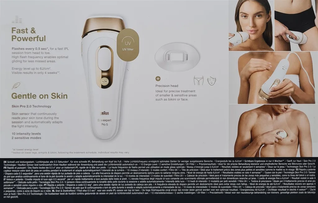 Silk Expert Pro 5 ist das beste IPL-Haarentfernungsgerät von Braun. Der Skin Pro 2.0 Sensor passt sich automatisch an Ihren Hautton an und optimiert die Intensität für die perfekte Balance zwischen schnellen Ergebnissen und Hautverträglichkeit. Sensitive-Modi ermöglichen Hautkomfort und bis zu 125 Lichtimpulse pro Minute sorgen für weniger ausgelassene Stellen beim Gleiten auf Ihrer Haut.