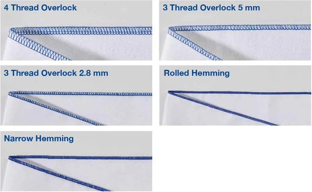 – 3 oder 4 Fäden, schneidet und näht Overlockstiche