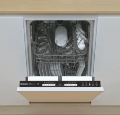 Der CDIH 1L949 von Candy ist ein vollintegrierbarer Geschirrspüler. Dank seiner Abmessungen von 45 x 82 x 56 cm (BxHxT) ist der Geschirrspüler extra schmal. Haushalte bis zu drei Personen treffen mit dem CDIH 1L949 die richtige Wahl. 9 Maßgedecke bieten beste Voraussetzungen für sauberes Geschirr von Tag zu Tag. Über die Startzeitvorwahl wählt man, zu welcher Uhrzeit der Spülvorgang startet. Glänzend sauberes Besteck und Geschirr sowie umweltschonende Spülvorgänge sind nur zwei Vorteile des CDIH 1L949. Verschiedene Spül-Einstellungen und seine Zuverlässigkeit überzeugen.