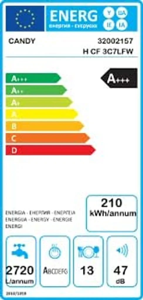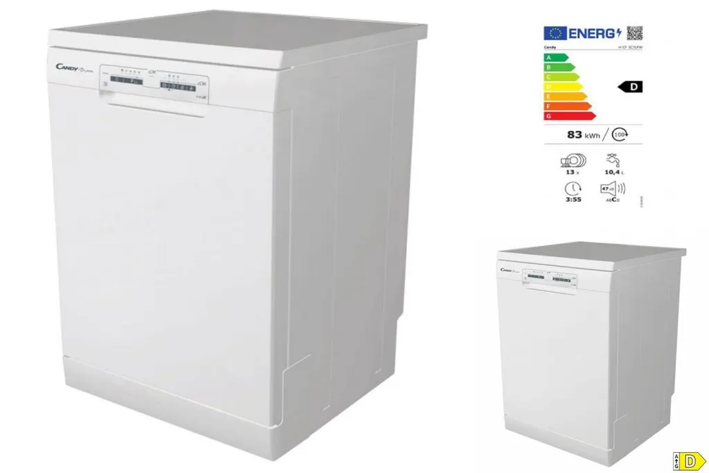 CANDY HCF3C7LFW – Freistehender Geschirrspüler – 13 Gedecke – 47 dB – A +++ – L60 cm – Weiß – Konnektivität: WIFI – Verzögerter Start: 3-6-9h – Anzahl der Programme: 5