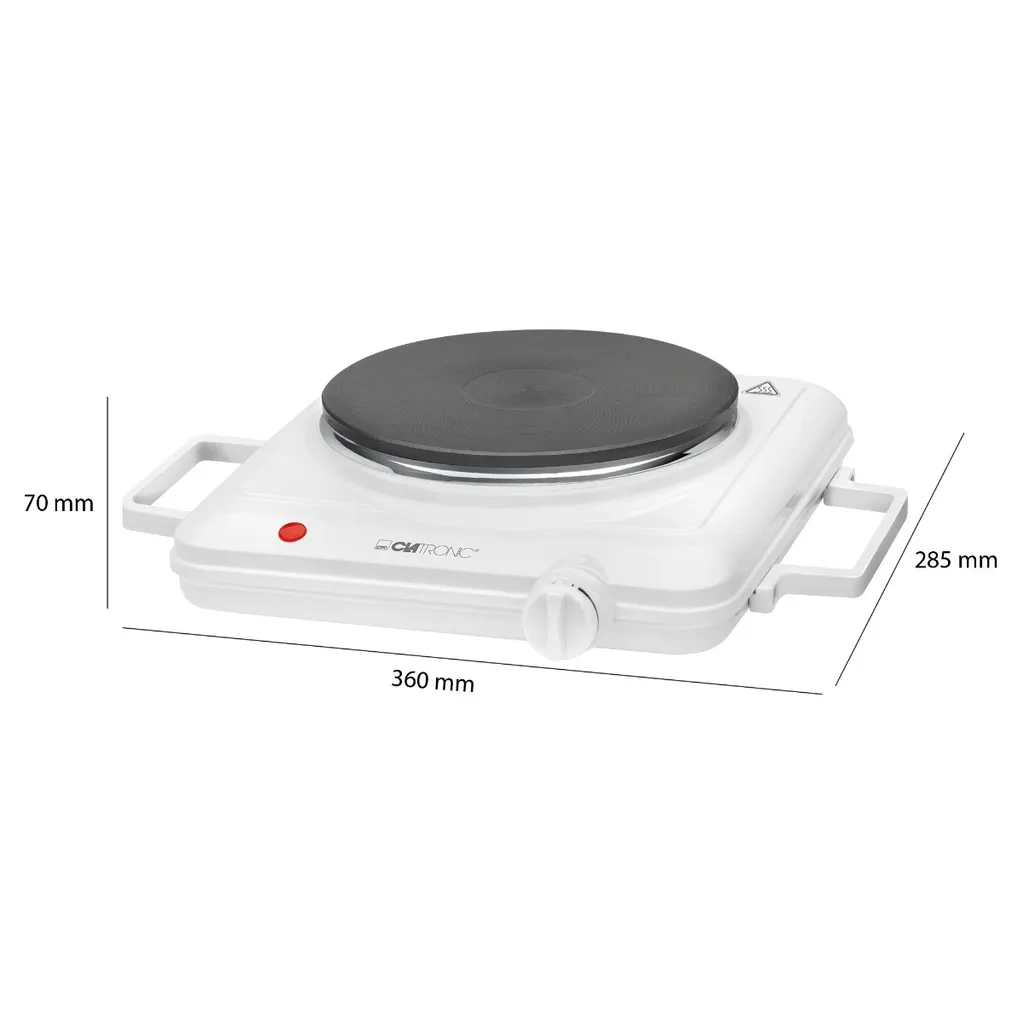 Clatronic EKP 35827 – Elektrische Einzel-Kochplatte mit einem Platten-Durchmesser von ca. 18 cm. Stufenloser regelbarer Thermostat mit Kontrollleuchte und hitzebeständige Lackierung.