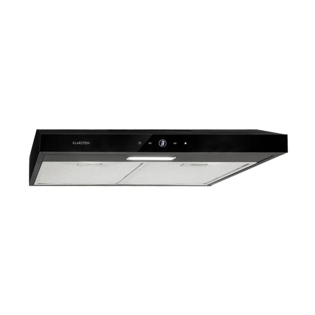 Platzsparend: kompakte Dunstabzugshaube geeignet zur Installation unter Küchenhängen, Einfache Umrüstung: mit optional erhältlichem Aktivkohlefilter geeignet zur Nutzung als Umlufthaube, Leistungsstark: maximale Abluftleistung bis zu 175 m³/h, Alles im Blick: leuchtstarke LED-Kochflächenbeleuchtung von 2 Watt, Einfach zu reinigen: Aluminium-Fettfilter geeignet zur Reinigung in der Spülmaschine, Elegant: Gehäuse aus pulverbeschichtetem Edelstahl mit schwarzer Acrylglass Frontblende, Volle Kontrolle: einfache SenseControl Steuerung der Leistungsstufen und des Lichts per Touch-Bedienfeld