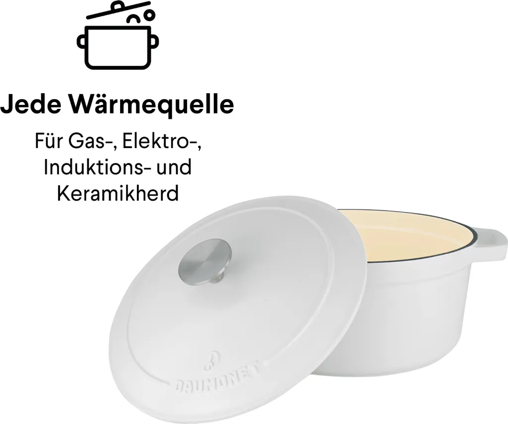 - HOHE QUALITÄT beim Garen : Dank der gusseisernen Pfanne wird das Essen von jeder Seite gleich stark erhitzt. Die heißen Dampfsäfte auf der Innenseite des Deckels beträufeln das Fleisch. So wird das Fleisch zart und trocknet nicht aus!