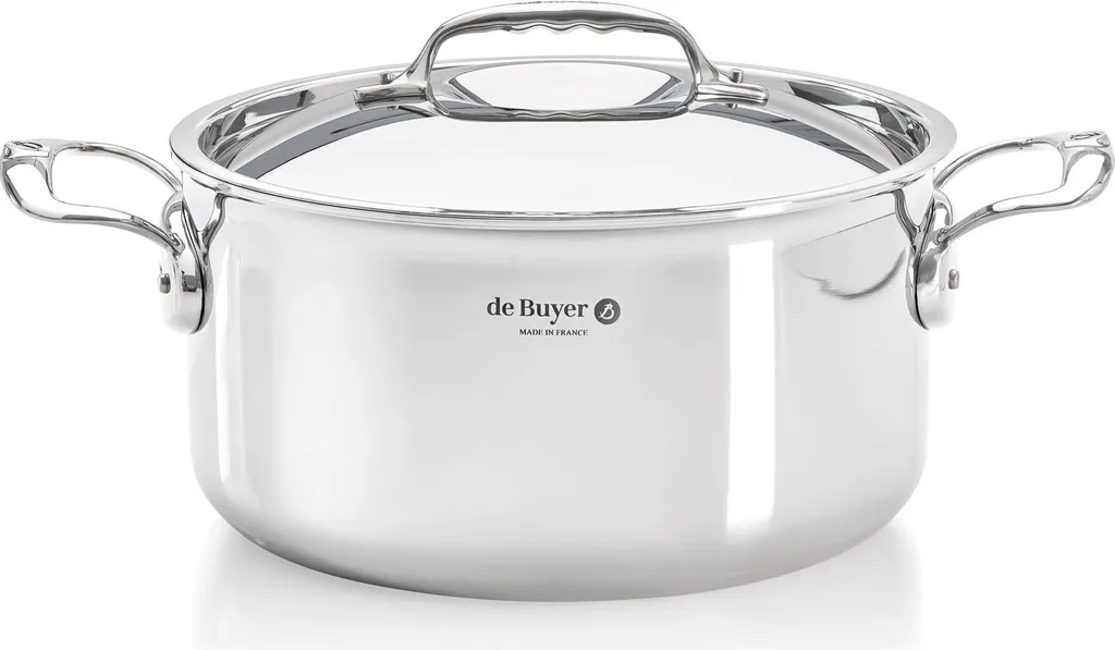 Gleichmäßige Erhitzung mit den Töpfen von de Buyer Die Affinity Kollektion von de Buyer wird aus abwechselnder Edelstahl- und Aluminumschicht hergestellt. Die optimale Wärmeverteilung und die gleichmäßige Erhitzung sorgen für ein effektives Energiesparen. Die ergonomischen Stiele und Henkel sind aus vernietetem Edelstahl und liegen besonders angenehm in der Hand. Durch die einfache Reinigung – dieses Produkt darf in die Spülmaschine – ist diese Kollektion der französischen Traditionsfirma überall sehr beliebt.