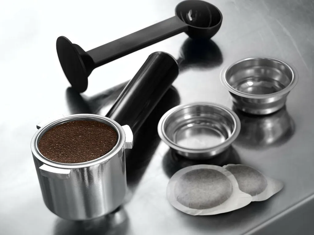 - Geeignet für gemahlenen Kaffee und „Easy Serving Espresso“-Pads