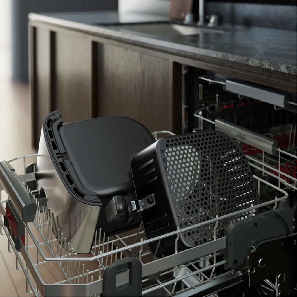 - Spülmaschinenfest: Schublade und entnehmbarer Frittierkorb
