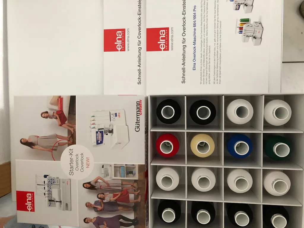 ELNA-Aktion mit Starterset – Sie sparen 70. Die Schnell-Anleitung zeigt die wichtigsten Stiche für Ihre Nähideen im Überblick.Das Set enthält Overlockgarn in den Farben weiss, beige und schwarz. Extra: Garn in den Farben rot, blau, gelb und grün, mit dem Sie Ihre Maschine passend zu den farblich gekennzeichneten Fädelwegen einfädeln und die verschiedenen Stiche genau kennenlernen können. Einfach Cool !Eine Elna Overlock-Maschine ist die perfekte Ergänzung zu Ihrer herkömmlichen Nähmanschine. Sie sorgt für ein Finish mit dem gewissen Extra und spart Zeit – für die anderen wichtigen Dinge im Leben!OVERLOCKMERKMALEVorrichtung für Sofort-RollsaumAutomatisches Einfädeln des unteren SchlaufengebersMax. Nähgeschwindigkeit 1300 Stiche pro MinuteFarbcode für den FadenverlaufVerstellbare SchnittbreiteRegulierbarer NähfussdruckEinrastender NähfussTeleskop-Antenne mit FadenführungenElektronisches FusspedalAbfallbehälterStaukasten für Elna – ZubehörSchutzhülle PROGRAMMEFadenanzahl : 4/34-Fäden-SicherheitsstichDehnbarer TrikotstichKräuseln 43 fäden breitOverlock 3Schmalsaum 3Rollsaum : 3Flatlock : 3