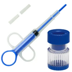 Die Tablettenspritze besteht aus widerstandsfähigem Polystyrol und kann zur einfachen Reinigung leicht auseinandergenommen werden, ist immer wieder verwendbar.