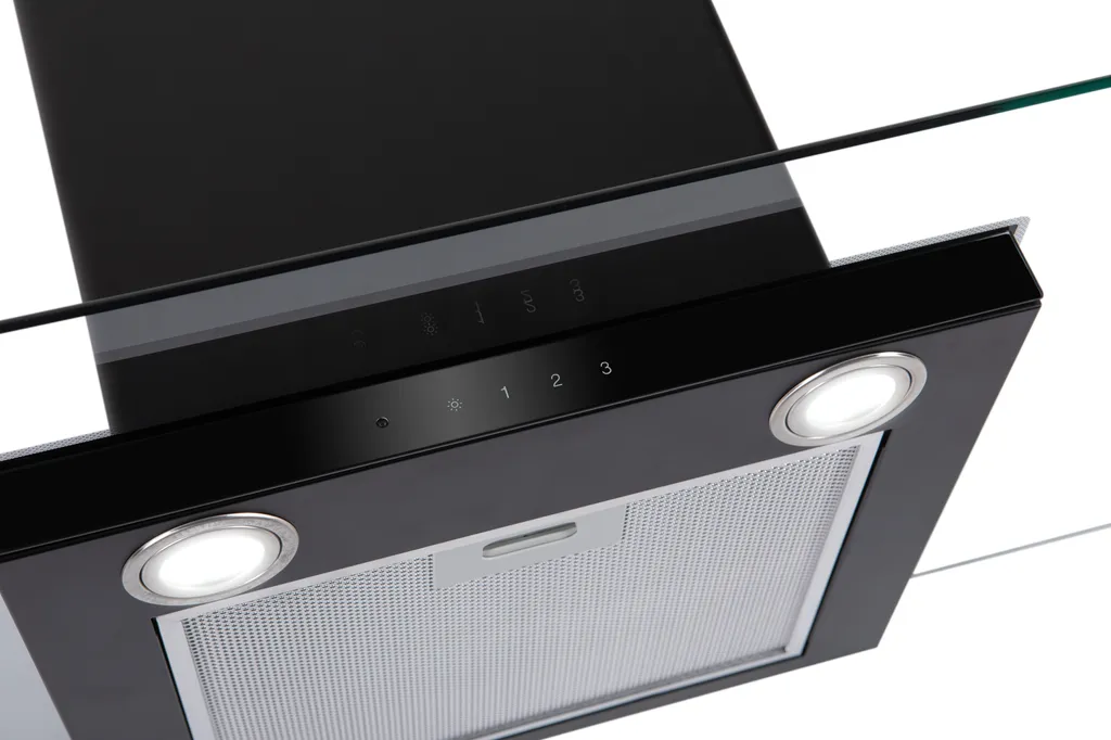 Das Modell GCH T 466 BL Prime ist eine moderne Dunstabzugshaube mit Schwazglaspanell.