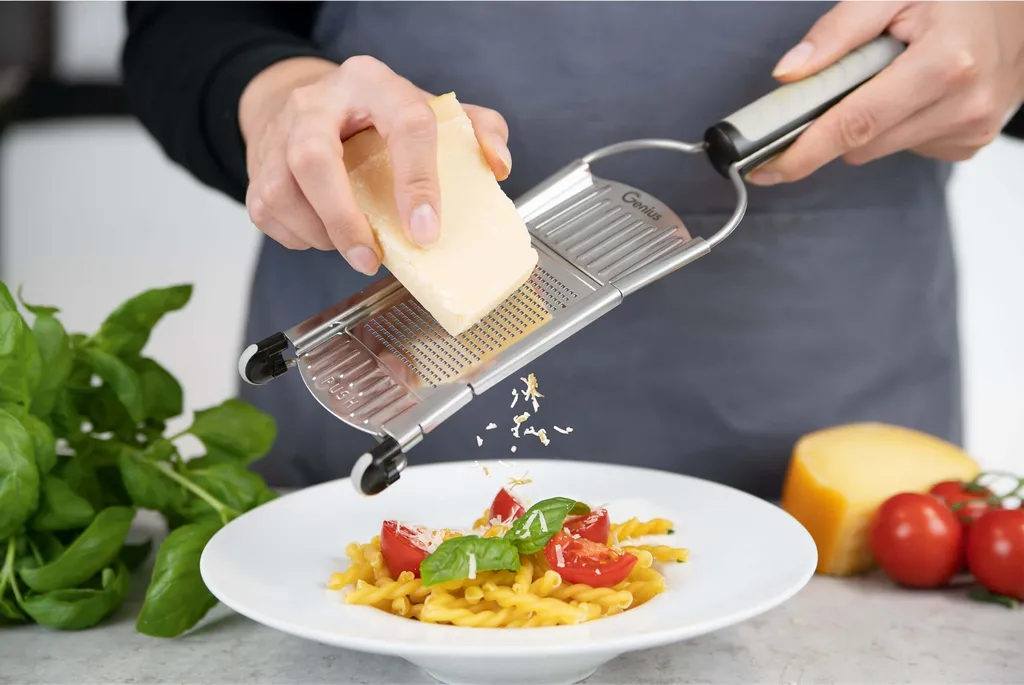 - Unzählige Möglichkeiten: Der Speed ist einsetzbar als Gemüseschneider, Parmesanreibe, Nussreibe, Zwiebelschneider, Raspel etc., alles in einem Gerät. Er hat unzähligen Schneidmöglichkeiten wie z.B. Scheiben, Julienne, Würfel, sowie Geriebenes