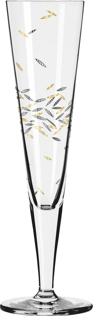 Garant für Eleganz: Das Champagnerglas lässt zarte Ellipsen über dasNachbildung tanzen, die fein liniert im Stil geschliffener Diamanten für schillernde Zeiten sorgen ‐ in Gold und auch im Mix mit Schwarz.