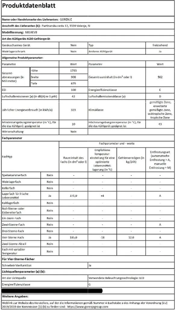 - Crushed ice Glasabstellflächen: 5 stk.Eierbehälter / Eiswürfelbehälter: 1FreshZoneGefrierablage Türe: 3 stk.2 SchubfächerLED InnenbeleuchtungGlasabstellflächen: 5 stk.Max. Geräuschpegel: 42 dB(A)Inverter-KompressorKältemittel: R600ABreite: 908 mmHöhe: 1793 mmTiefe: 679 mm