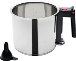 Dieser Wasserbadkocher ist aus hochwertigem Edelstahl rostfrei 18/8 gefertigt und verfügt über einen praktischen Einfülltrichter. Der extra starke, energiesparende Thermo-Kapselboden und die Eignung zum Erwärmen von Milchspeisen, Kindernahrung oder Schokolade ohne Überlaufen und Anbrennen der Speisen, sorgen für einen großen Spaß beim Kochen.