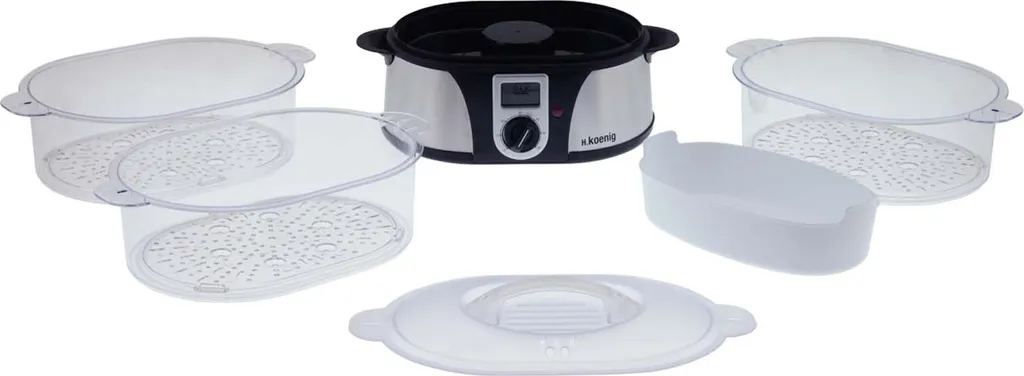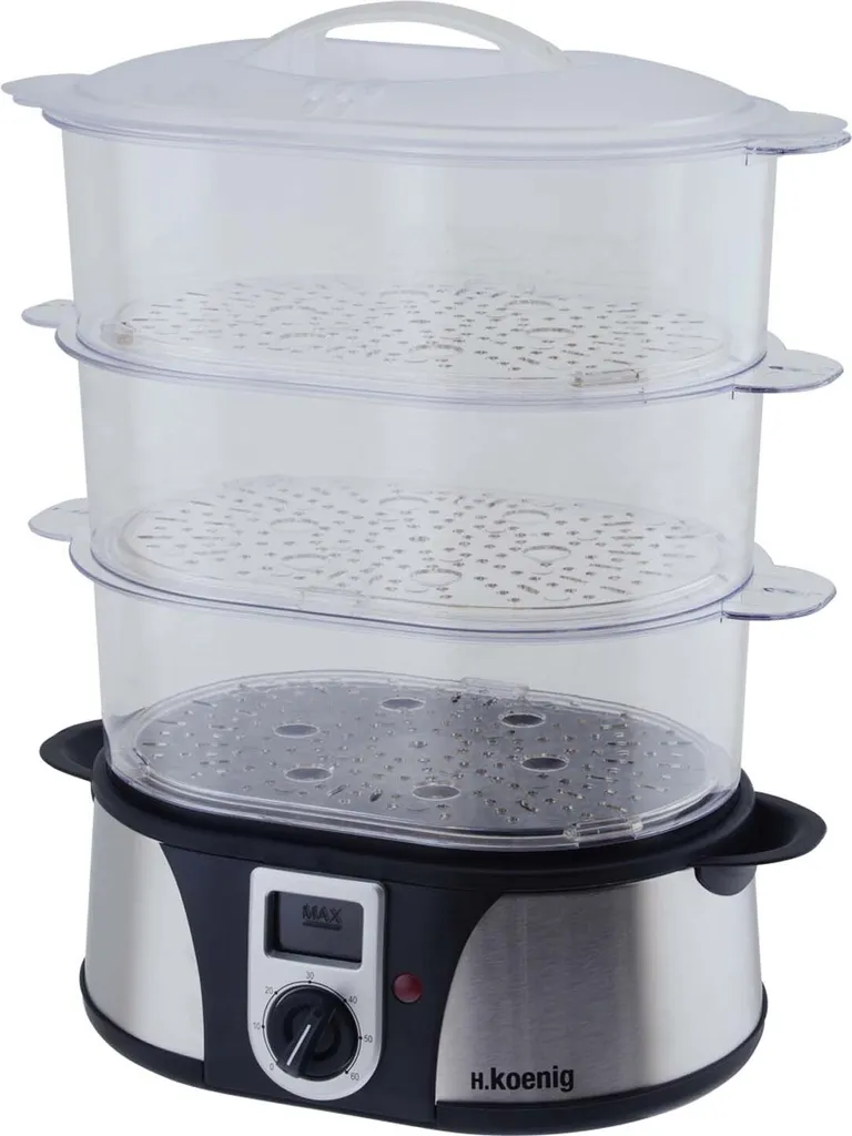 Der H.Koenig Dampfgarer VAP12 ist ideal für vitaminreiche Kost und schonende Zubereitung von Gemüse, Fisch und Reis. Genießen Sie ganz einfach eine gesunde und leckere Diätküche.