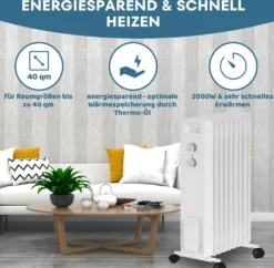 Rohnson Elektrischer Ölradiator R-2511-16, 2500W 11 Rippen Weiß