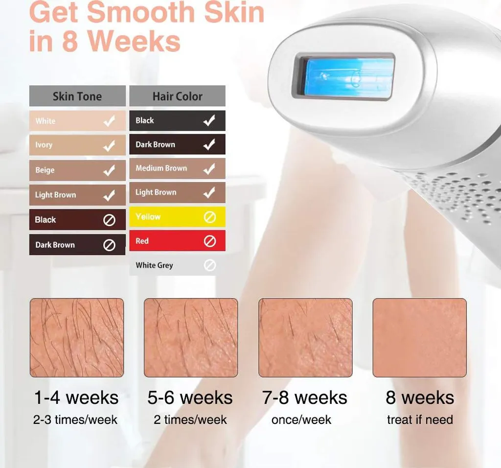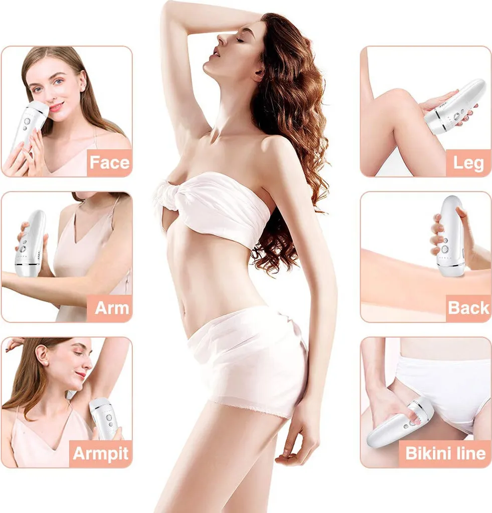 Mit dem IPL-Haarentfernungssystem können Sie die Probleme der täglichen Rasur loswerden, sich von allen unerwünschten Haaren verabschieden und eine natürliche, haarfreie Haut erhalten. Es hilft, sich auf Partys selbstsicher zu zeigen. Genießen Sie das Sonnenbad im Badeurlaub.