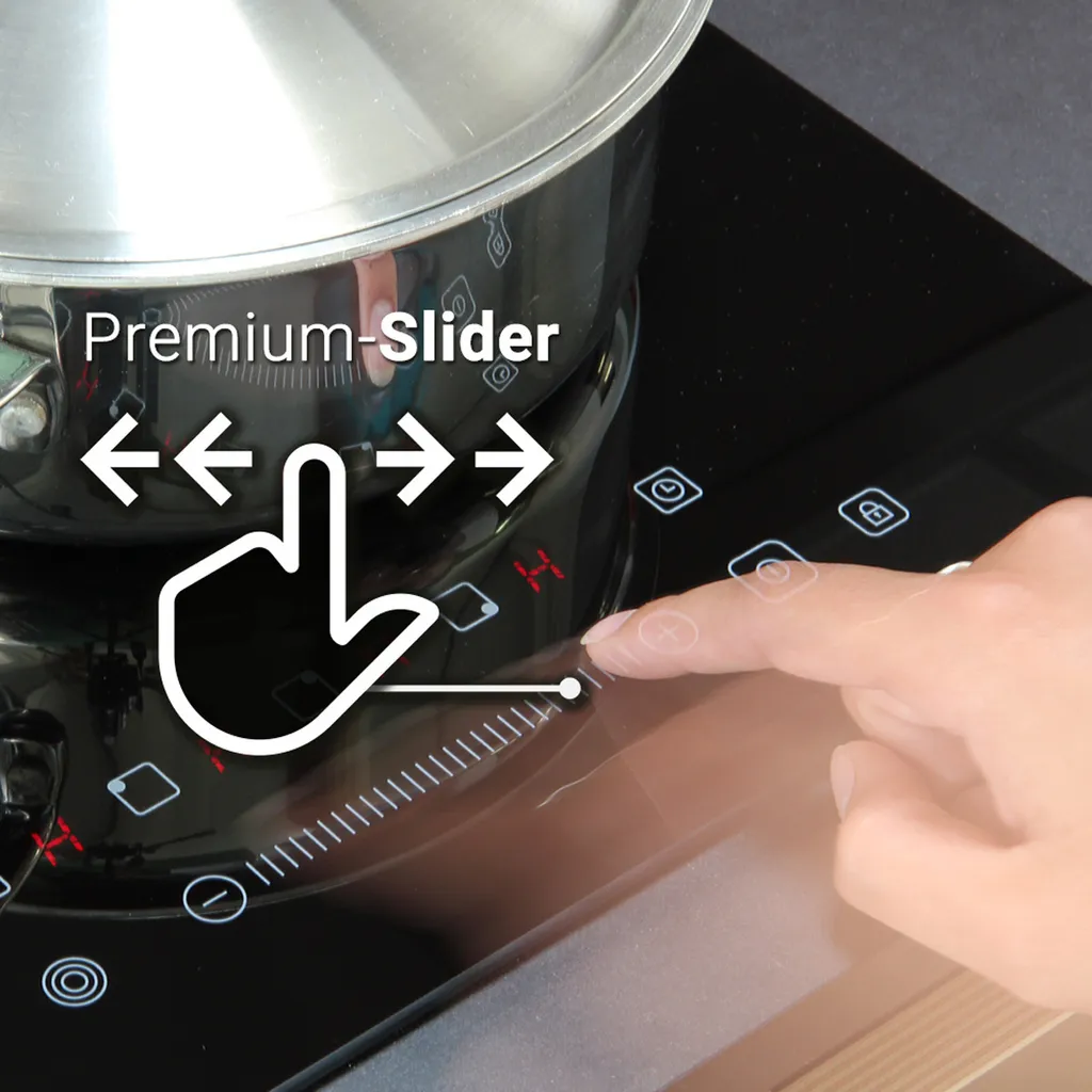 Das Gerät ist mit einer Kindersicherung ausgestattet. Wenn sich kein passendes Kochgeschirr auf der Kochzone befindet, wird diese automatisch abgeschaltet. Die Breite des Kochfelds beträgt 77cm und eignet sich für geräumige Küchen.