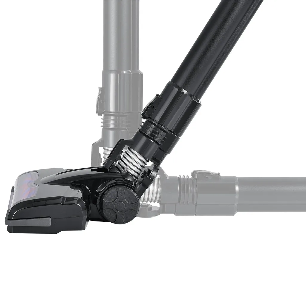Die flexible Bodendüse ist für Teppich und alle gängigen Hartböden geeignet. Durch das Dreh-Kipp-Gelenk erreichen Sie mit diesem Akkustaubsauger selbst schwer erreichbare Stellen unter dem Sofa oder Bett. Die verbaute LED-Beleuchtung bringt Licht in dunkle Ecken.