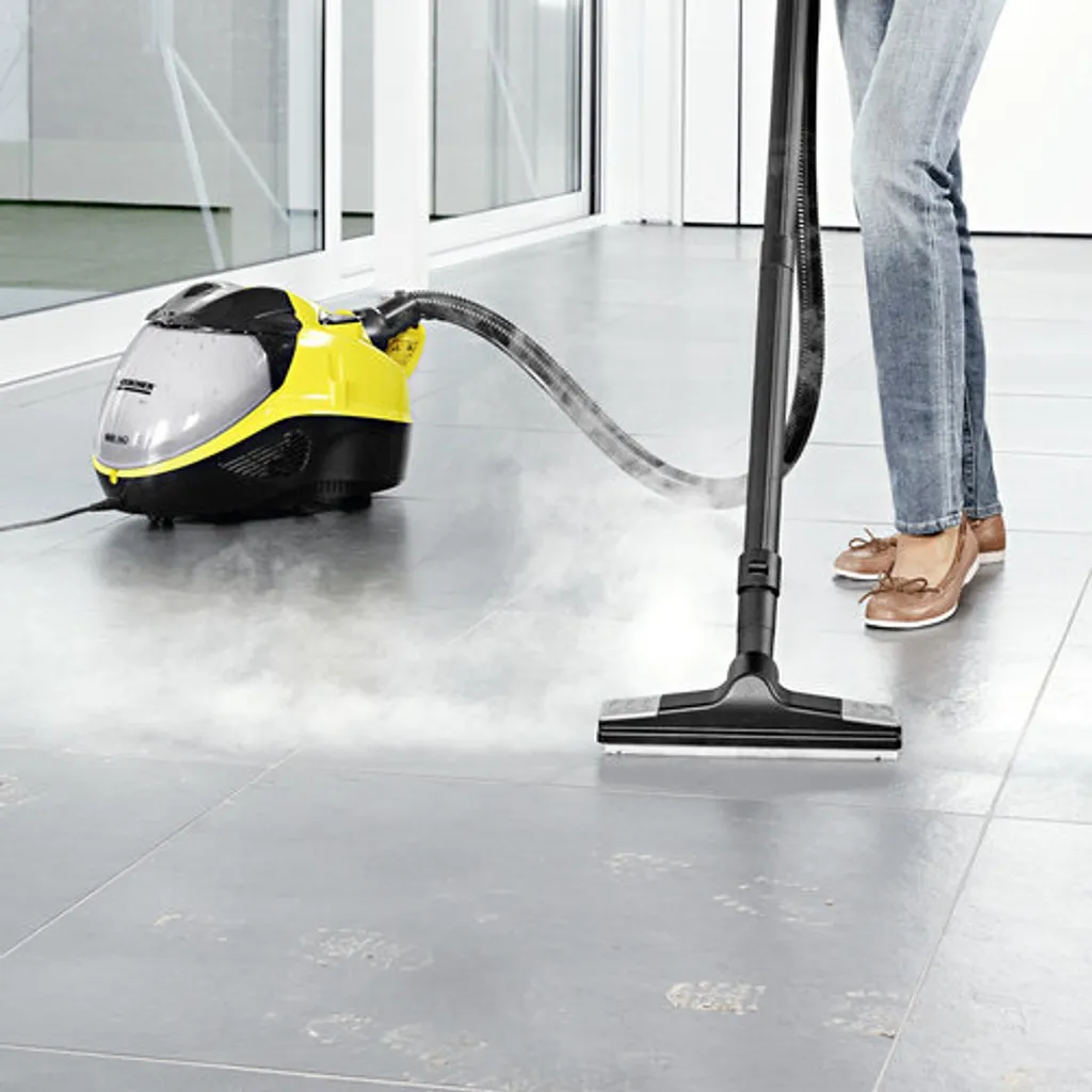 Der Dampfsauger SV 7 von Kärcher vereint die Vorteile von Dampfreinigern mit den Stärken von Trockensaugern. Er saugt zum Beispiel Krümel vom Boden, wischt feucht und trocknet den Boden abschließend sogar. Und das alles bequem in einem einzigen Arbeitsgang.