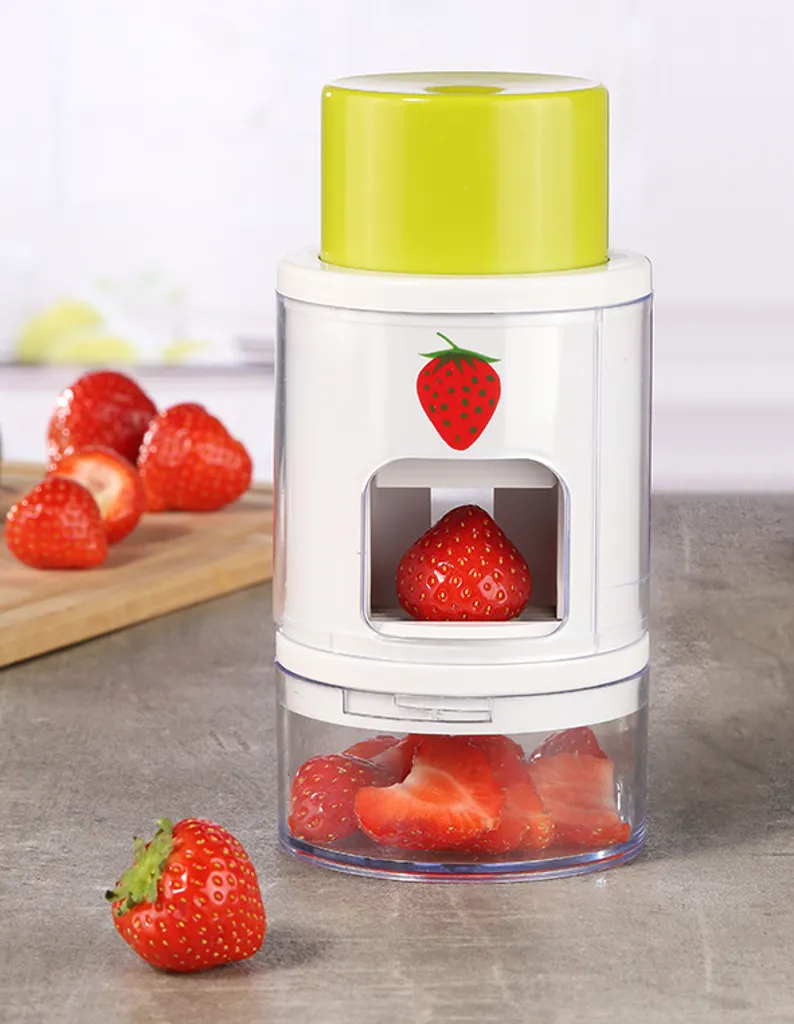 Auf der anderen Seite können Erdbeeren oder ähnliches Obst in Scheiben geschnitten werden.