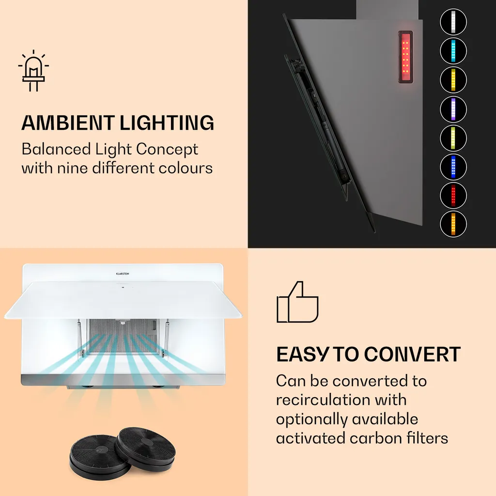 Klarstein Aurora Eco Dunstabzugshauben auch Dampf und Essensgerüche. Mit bis zu 550